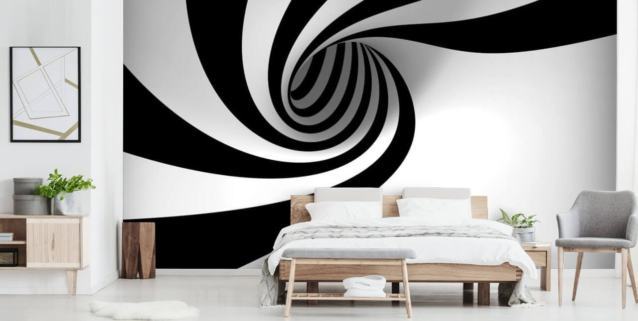 Abstrakte Spirale - Schwarz-Weiß-3D-Tapete
