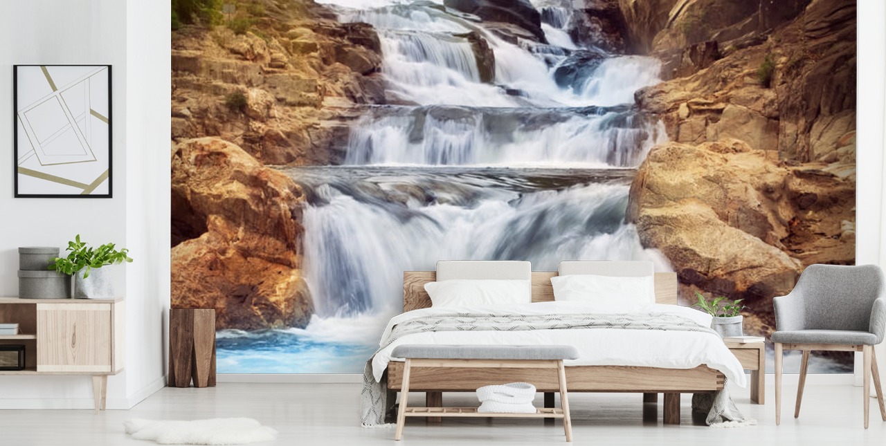 Beobachten Sie das Wasser in dieser wunderschönen, lebendigen Wasserfall-Tapete. Einfach zu installieren und absolut atemberaubend.