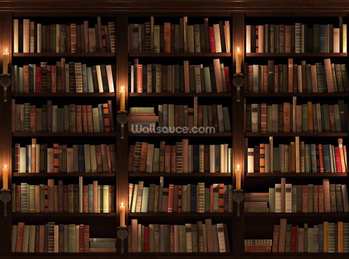Verleihen Sie Ihrem Zuhause ein völlig neues Element mit einer atemberaubenden Tapete aus Bücherregal und Kerzen. Dieses Wandbild mit 3D-Effekt würde in den meisten Räumen fantastisch aussehen, besonders in einer Lounge.