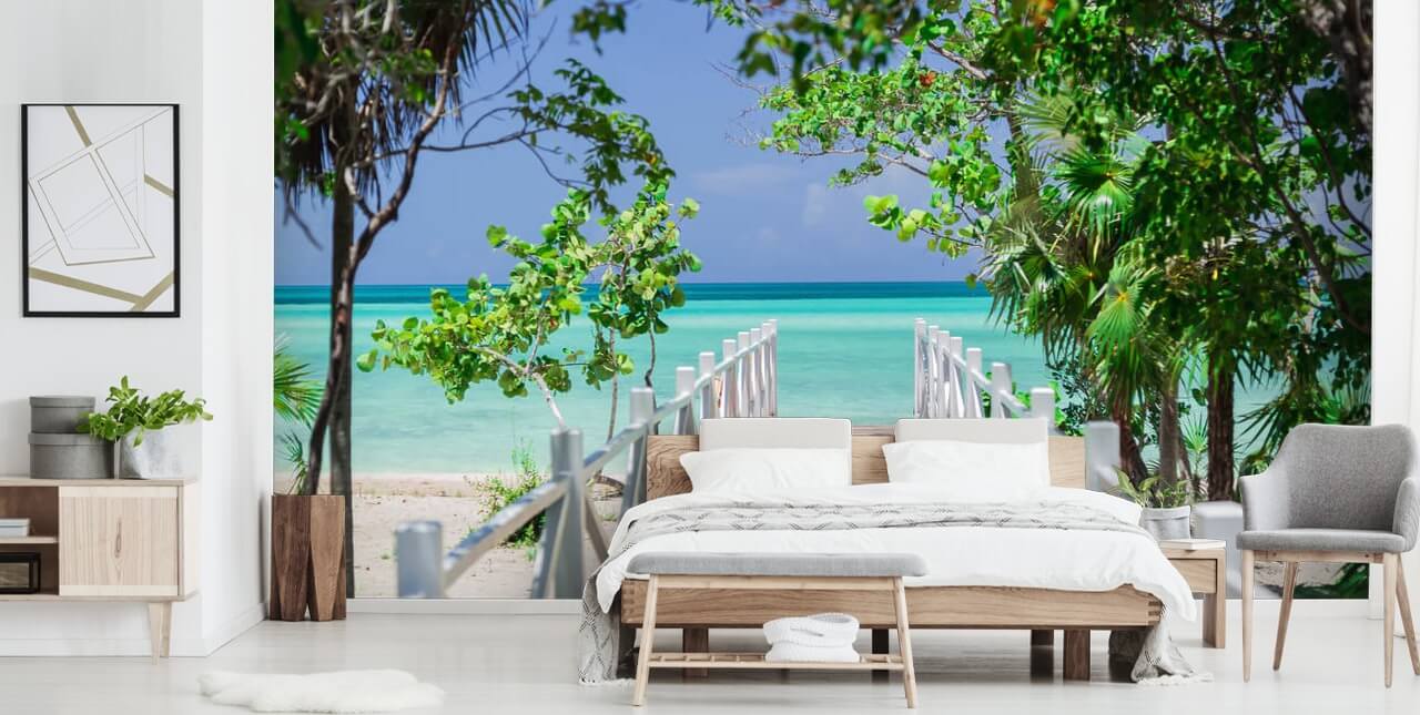 Atemberaubende Brücke zum Strand Fototapete von Wallsauce bringt Sonne und Meer in Ihr Zimmer.