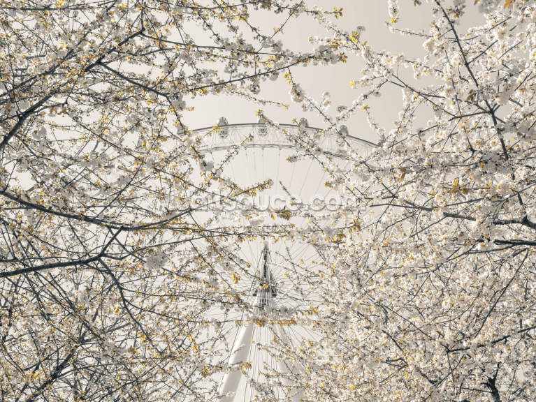 rosa-weiße Blumentapete mit dem Titel Japanischer Kirschbaum in Blüte für Schlafzimmer