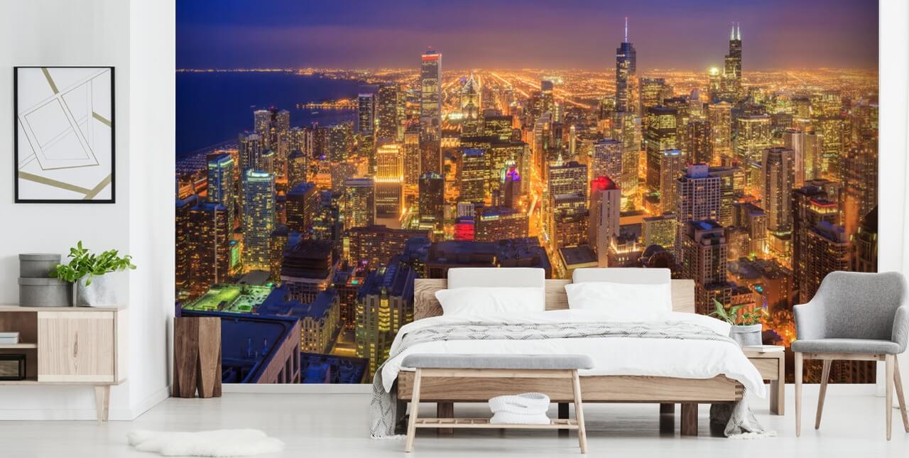 Schmücken Sie Ihre Wände mit diesem wunderschönen Wandbild von Chicago Skyline at Night. Maßgefertigt, um an die Wand zu passen.