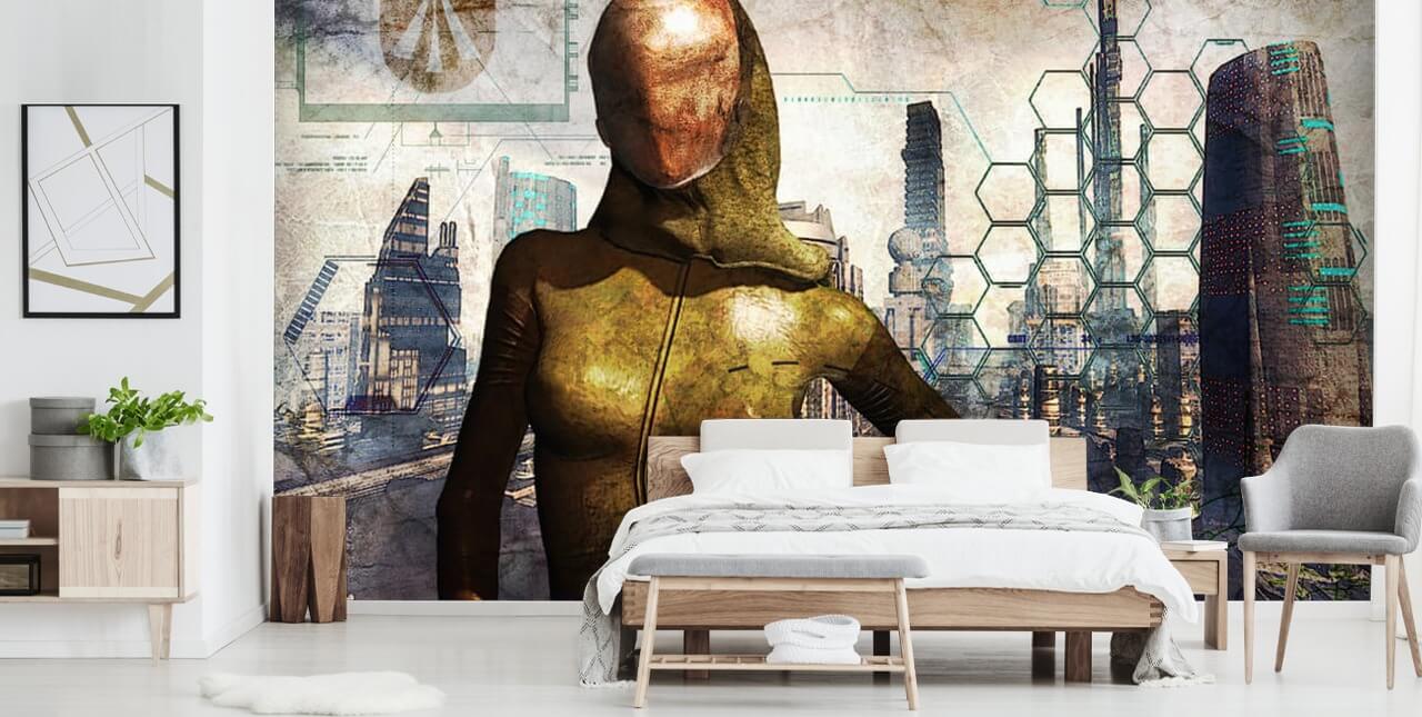 Verlieben Sie sich in diese Cyber Queen-Tapete für Ihr Spielzimmer. Dieses realistische Gaming-Hintergrundbild lässt all Ihre Freunde in den Kiefer fallen, wie cool es an der Wand aussehen wird! Bringen Sie noch mehr Science-Fiction-Ambiente in den Raum, indem Sie die Wände mit schimmernder Metallic-Silberfarbe streichen, damit Sie sich wie in einem Raumschiff fühlen und diese Cyber-Königin Sie an Ihrer Teleportationstür erwartet.