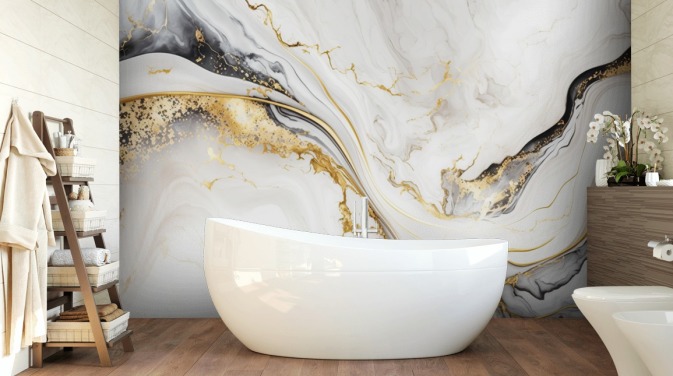 Tapetentapete aus weißem und goldenem Marmor mit dem Titel White Marble With Gold Streaks für Esszimmer, Badezimmer und Küchen