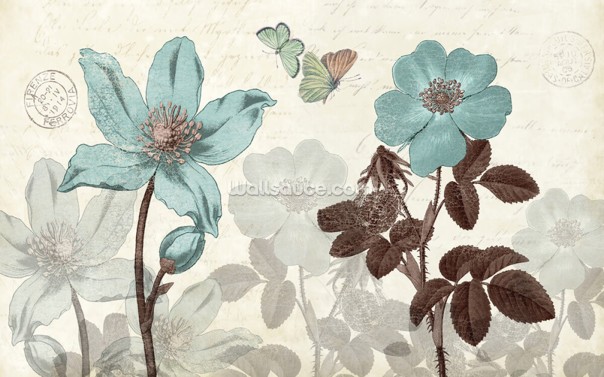 Wenn Sie Vintage-Glamour in Ihrem Zuhause genießen möchten, warum genießen Sie nicht dieses fabelhafte Tapeten-Wandbild von Duck Egg Blue Florals?