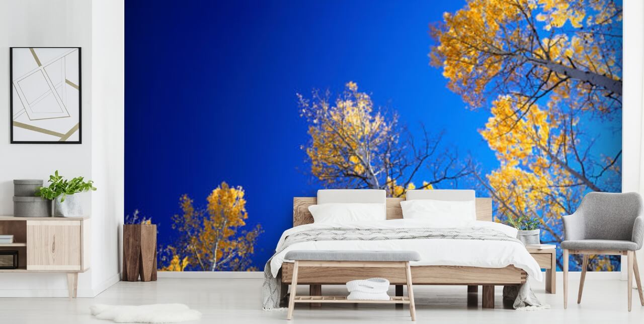 Bringen Sie die herrlichen Farben der Natur mit dieser dramatischen Herbst-in-Colorado-Tapete in Ihr Zuhause. Eine wunderschöne Panorama-Tapete für jeden Raum im Haus. Wenn Sie es in einem Wohnzimmer installieren, halten Sie sich durchgehend an das marineblaue und senfgelbe Farbschema. Wählen Sie eine gelbe oder marineblaue Couch, gelbe Vorhänge und sogar einen Marinekamin! Diese exquisite Baumtapete sieht auch ideal an einer Decke aus, sodass Sie nach oben schauen und diese wundervolle Aussicht bewundern können, wenn Sie im Bett liegen oder auf Ihrer Couch sitzen!