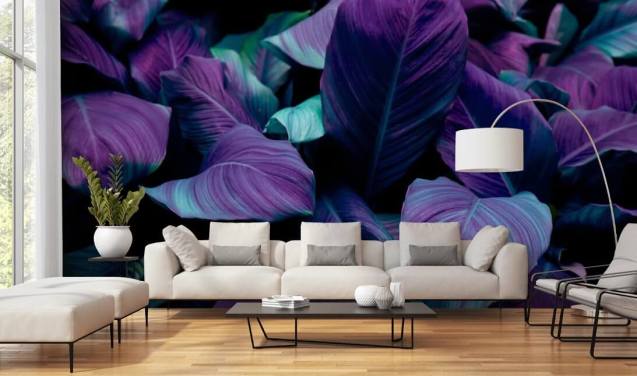 Lila und blaue Blätter Dschungel Wallpaper