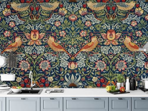 Pastell-Tapete Blumen und Vögel