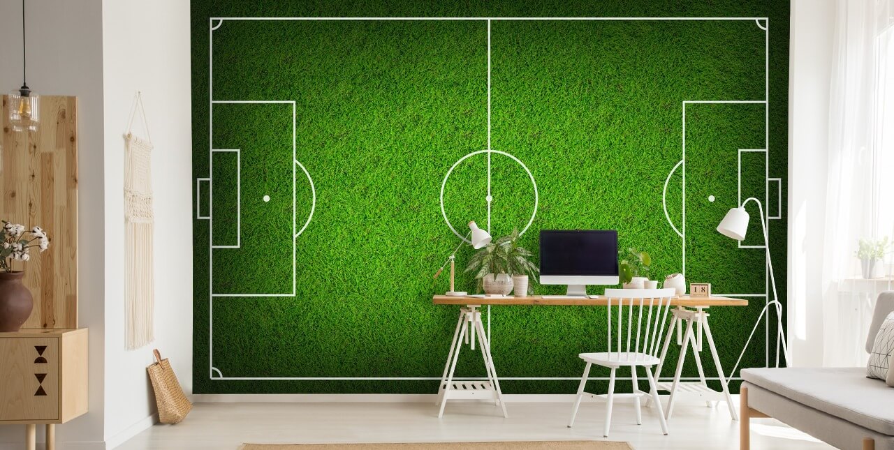 Installieren Sie dieses maßgeschneiderte Fußballspielfeld-Hintergrundbild. Erhältlich zum Abziehen und Aufkleben oder Aufkleben der Wandtapete.