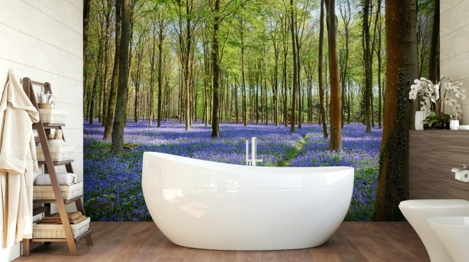 blaues und grünes Waldtapeten-Wandbild namens Bluebell Woodland für Schlafzimmer oder Esszimmer