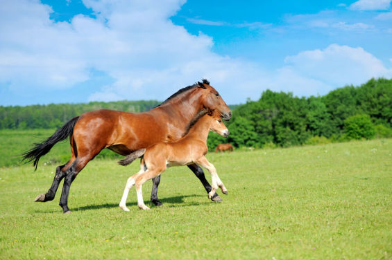 Pferd und Fohlen laufen im Feld Wallpaper