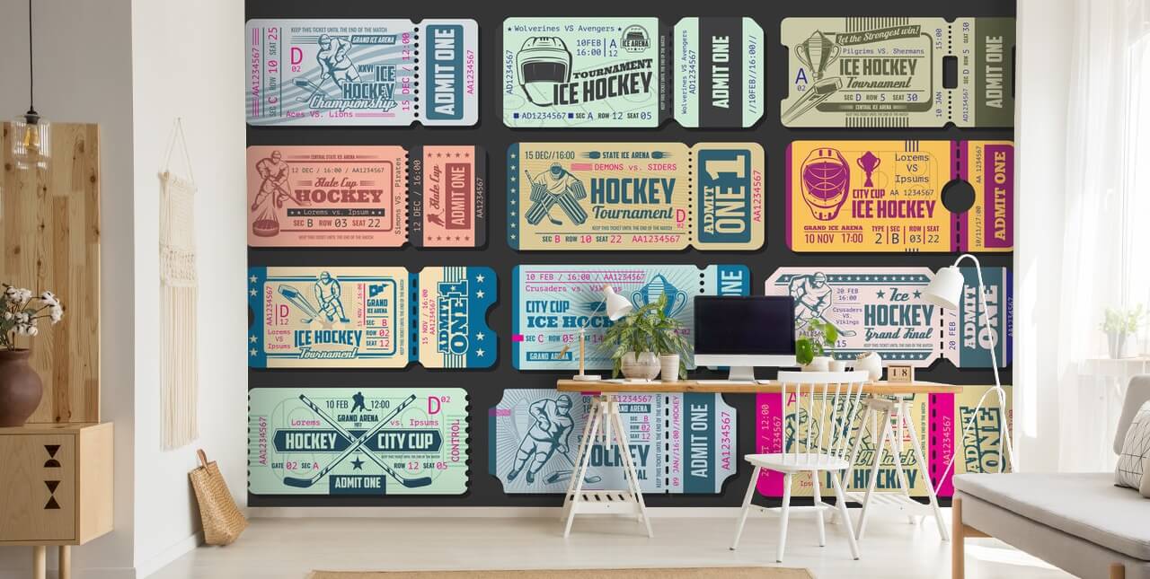Zeit zum Anpacken mit unserem fantastischen Tapeten-Wandbild für Eishockeykarten, maßgeschneidert für Ihr Zuhause.