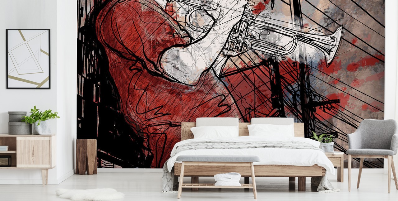 Spüren Sie Trompete, Saxophon und Klavier in dieser erstaunlichen Jazz-Trompeten- Diese abstrakte Gemäldetapete bringt die Atmosphäre eines Jazzclubs in Ihr eigenes Zuhause!