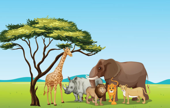 Afrikanische Tiere Cartoon Sonnenuntergang Wallpaper