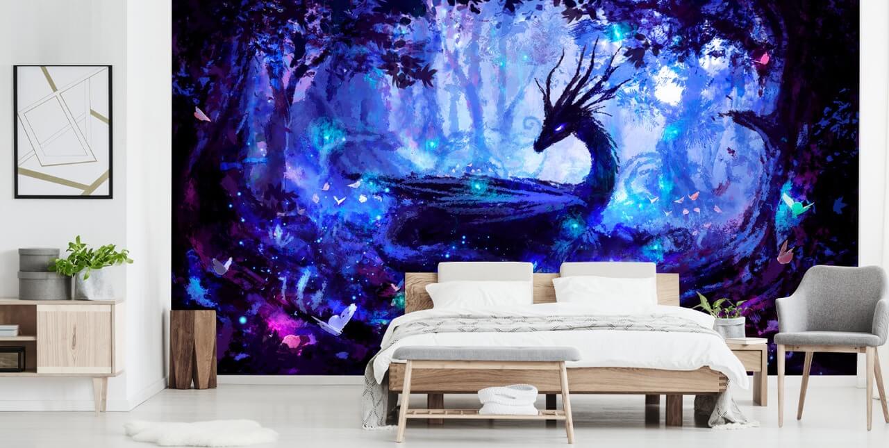 Schmücken Sie Ihre Wände in Fantasie mit diesem maßgeschneiderten Tapetenbild Magical Dragon Forest.