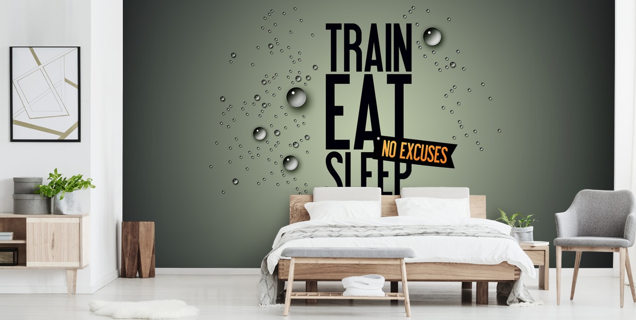 Trainieren — Essen — Schlafen — Wiederholen — mit diesem Motivierenden Gymnastik-Wandbild. Dieses Wandbild ist nach Ihren Maßen gefertigt und eignet sich perfekt für Trainingsbereiche!