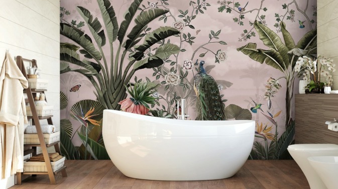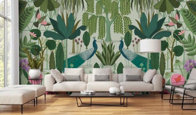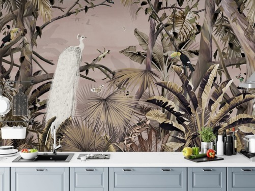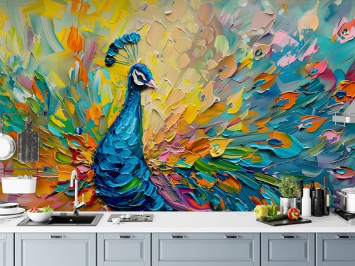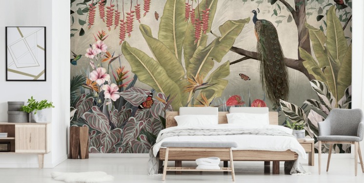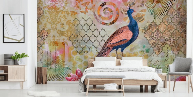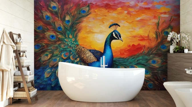 Transform your space with a beautiful peacock wallpaper mural. Peacocks represent beauty, renewal, and confidence. Their stunning look adds elegance to any room, whether a bedroom, living room or home office.