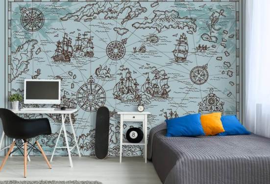 blaue benutzerdefinierte Piratentapete namens Piraten für das Kinderzimmer