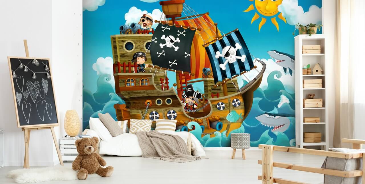 Schaffen Sie ein Piratenparadies für Ihr Kind mit diesem maßgeschneiderten Piraten-Wandbild aus Wallsauce.
