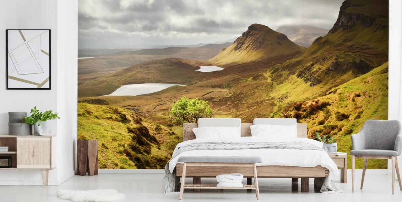 Seien Sie der Natur nahe mit dieser maßgeschneiderten Quiraing-Tapete. Erhältlich in Abziehen und Aufkleben oder Aufkleben der Wandtapete.