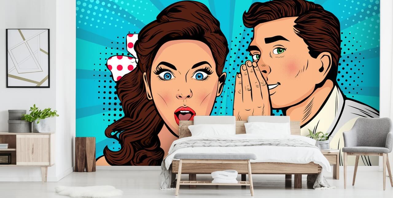 Schockierendes Flüstern - Blaue Pop-Art-Tapete
