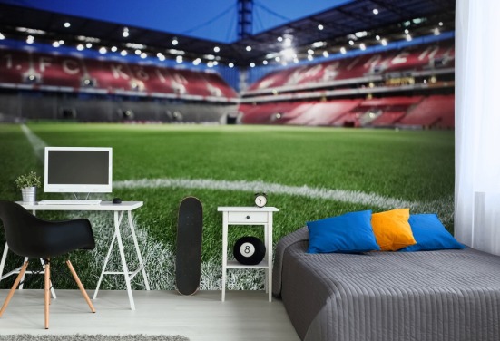 Wandbild „Großes Fußballstadion“, personalisierbar, grün und grau, mit Lichtern, für Kinder- und Jugendzimmer