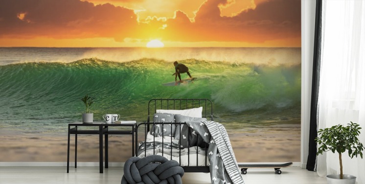 Blaues, personalisierbares Wandbild „Surfing Ocean“ mit dem Namen Barrel für Schlafzimmer, Badezimmer und Unternehmen