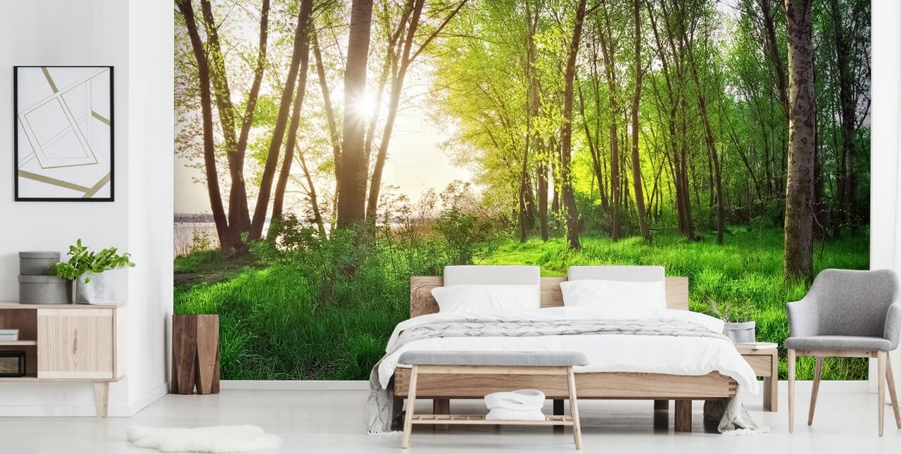 Haben Sie eine Verjüngungskur? Wählen Sie diese ruhige Spring Woodland Edge-Tapete. Maßgeschneidert, um perfekt an Ihre Wand zu passen.