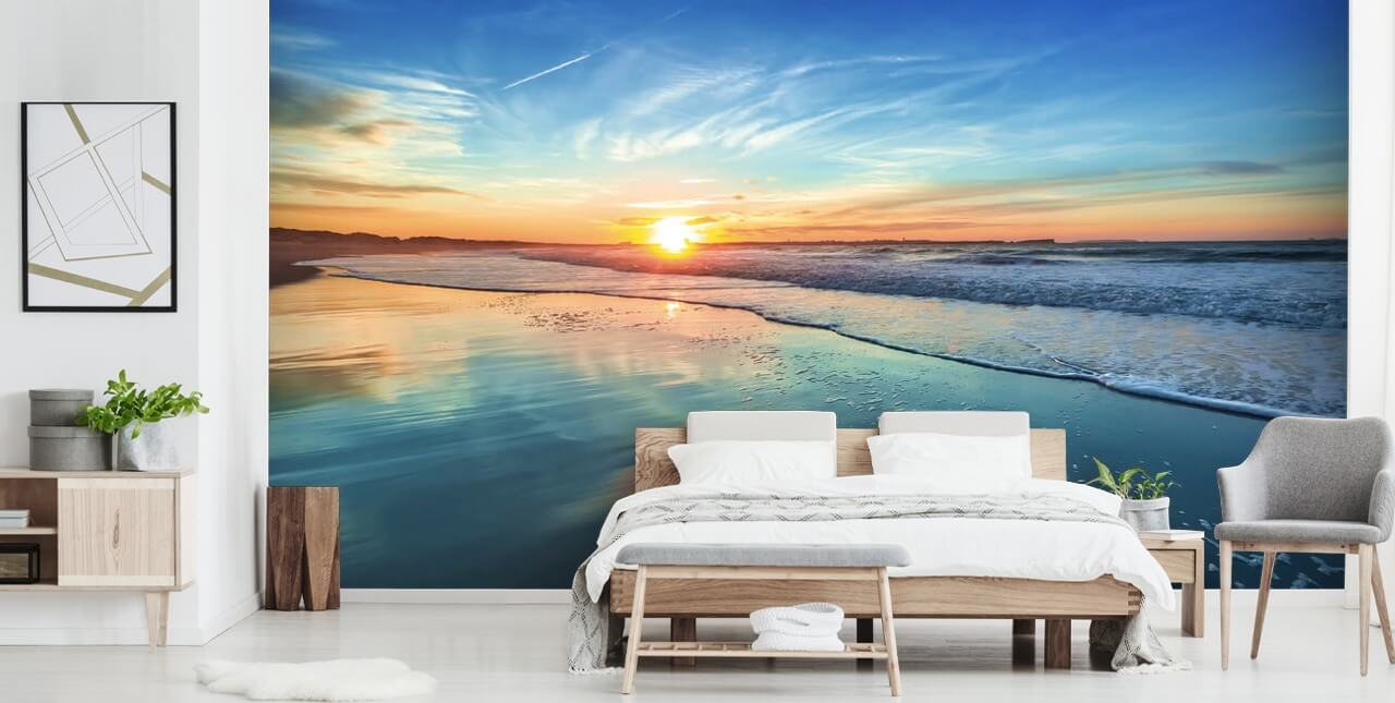 Bringen Sie mit dieser Fototapete Sunset einen atemberaubenden Blick in Ihr Zimmer. Entdecken Sie die gesamte Sammlung von Strandtapeten.
