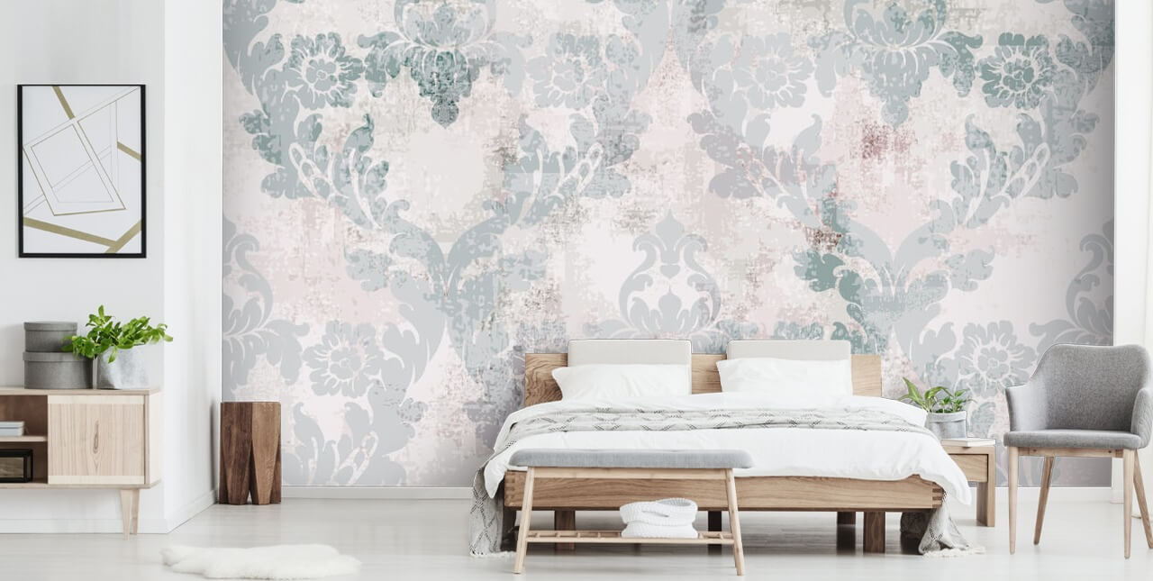 Verschönern Sie Ihr Zuhause mit einer wunderschönen Feature-Wand, indem Sie sich für dieses maßgeschneiderte Tapeten-Wandbild in Blaugrün im Vintage-Muster von Wallsauce.com entscheiden. Die perfekte Damast-Tapete für ein romantisches Schlafzimmer oder ein von historischen Dramen inspiriertes Wohnzimmer.
