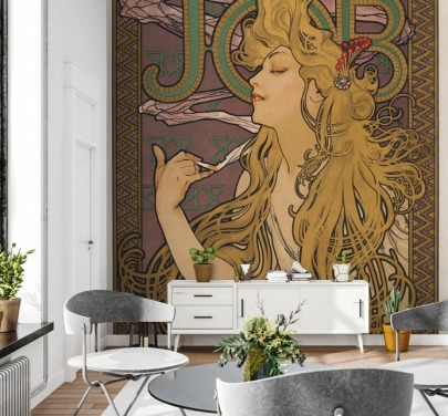 Jugendstil-Tapete namens Job (1896) von Alphonse Mucha für Wohn- und Schlafzimmer