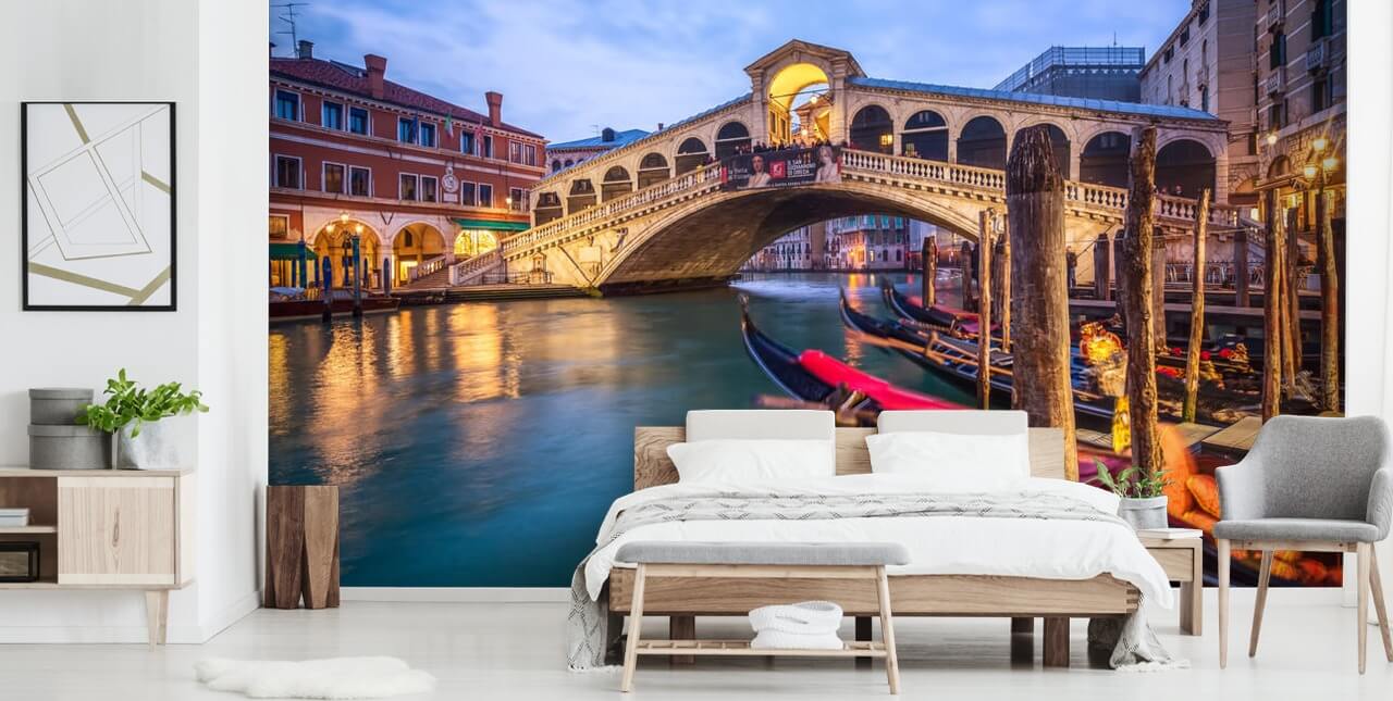 Genießen Sie ein Gefühl von Italien in Ihrem Zuhause mit dieser maßgeschneiderten Tapeten-Wandmalerei Die Rialto-Brücke von Wallsauce.com. Die perfekte Italientapete für Ihr Zuhause.