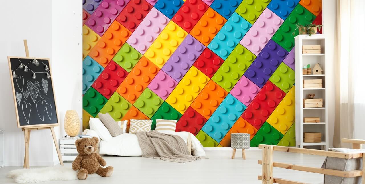 Liebt Ihr Kind Farbe und kann nicht genug von Bausteinen bekommen? Dann wird es in dieses coole Toy Building Bricks Tapete verliebt sein!
