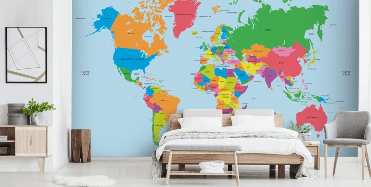 Politische Landkarte der Welt Farbenfrohes Karten-Wandbild