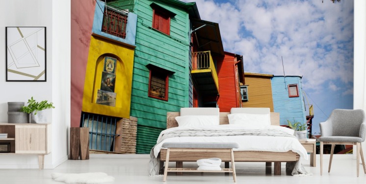 bunt bemalte Häuser Tapete