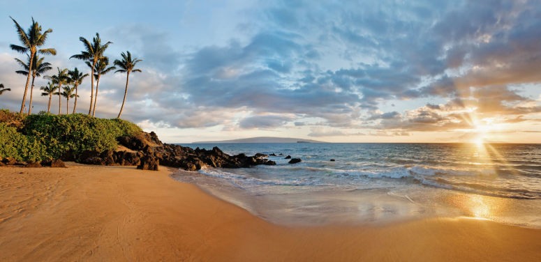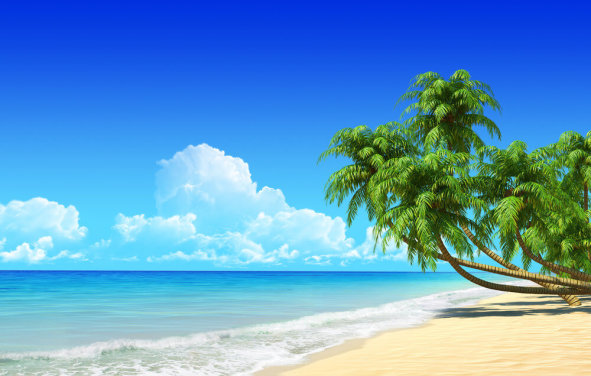 Spüren Sie die Wärme und den Luxus eines tropischen Strandes mit einer atemberaubenden tropischen Strandtapete.