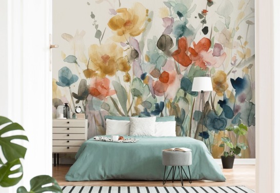 helles kundenspezifisches Blumenwiesentapetenwandbild namens Delicate Floral Meadow für Schlafzimmer