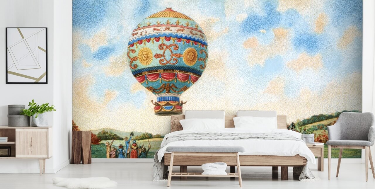 Genießen Sie diese wunderschöne Vintage-Heißluftballon-Tapete. Maßgefertigt, um an die Wand zu passen.