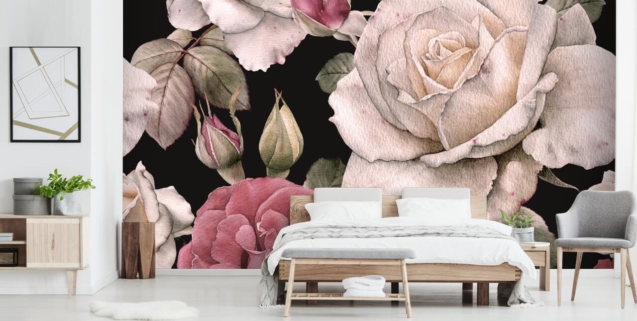 Genießen Sie dieses atemberaubende Tapeten-Wandbild mit weißen und rosa Rosen in Ihrem Zuhause! Eine schöne Option für ein hübsches Schlafzimmer oder ein süßes Kinderzimmer für Mädchen!