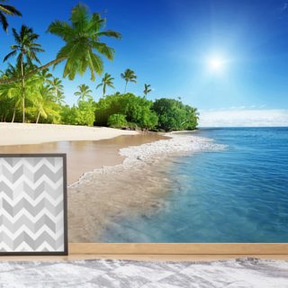 Blaues personalisierbares Strandtapeten-Wandbild namens Caribbean Palms für Badezimmer