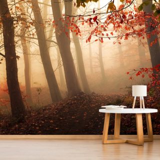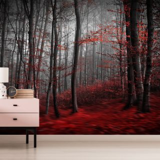 Rote anpassbare Wald-Wandtapete namens Red Carpet Forest für Schlafzimmer