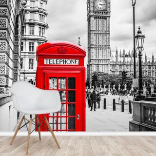 schwarze, weiße und rote Londoner Bus-Tapete namens Red London Bus für Heimbüros und Wohnzimmer