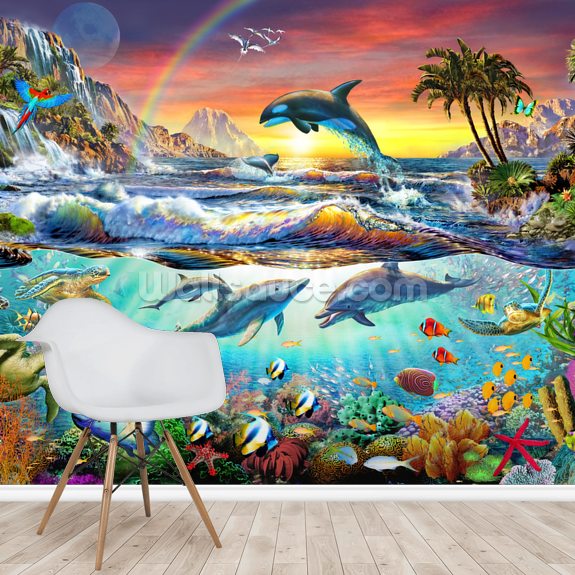 Enjoy the vibrant sea life with this custom-made Paradise Cove wall mural.
