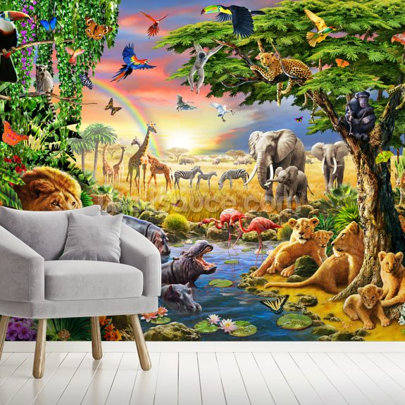 You'll spend hours looking at this wall mural, trying to find all the animals hidden within it, who have all gathered by the watering hole.