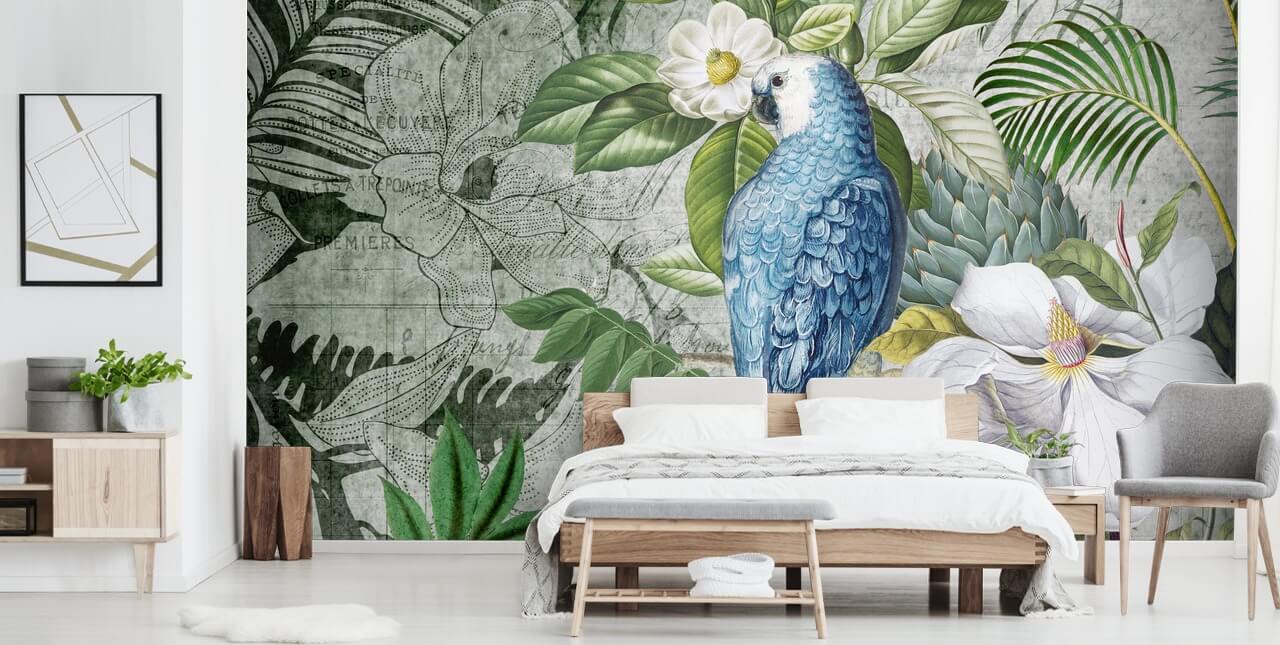 Update your decor with this stylish jungle wallpaper by our competition winner, Andrea Haase. Featuring a beautiful parrot in a tropical setting, this jungle mural will give you a stunning feature wall in the bedroom, office or living room.