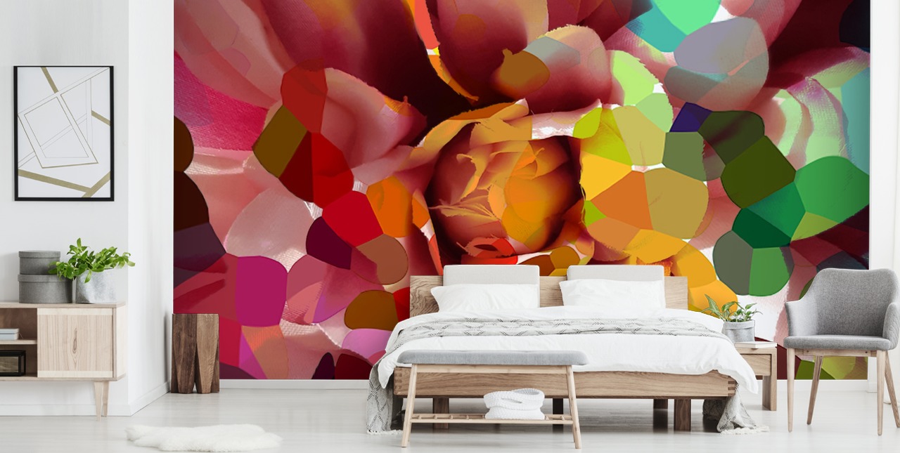 Choose this colourful flower mural for a room that is needing a focal point. Place it on a wall with as few items in front of it as possible to make sure you can enjoy the entire design. Keep the rest of the furniture minimal to make sure this artistic wallpaper is always the star of the show.