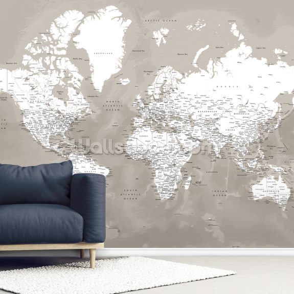 It's time to give your home a makeover with this custom-made Coffee Brown World Map wall mural from Wallsauce.com.