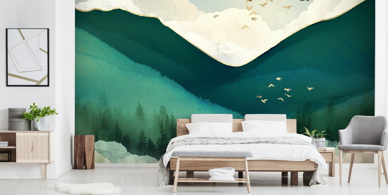 Install this beautiful Emerald Hills wallpaper mural designed by SpaceFrog Designs. Custom-made to fit your wall.