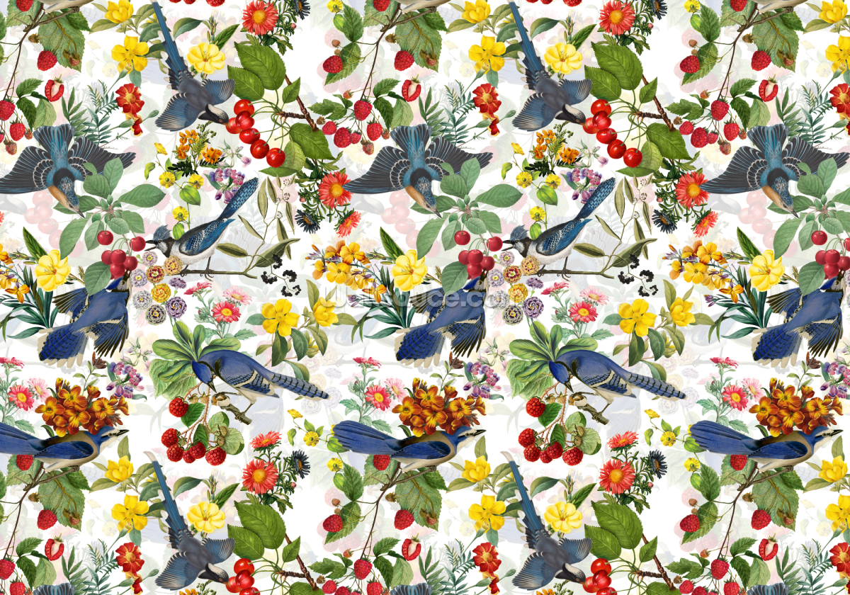 Add a splash of colour to your walls with this stunning Floral Blue Birds wallpaper.