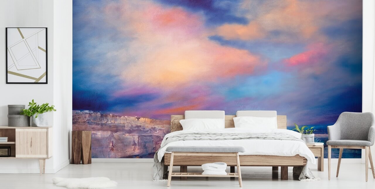 Due to the calming ambiance which this abstract landscape wall mural creates, we think that it would make a beautiful feature wall in a master bedroom. Bring out those pastel pinks and blues in your choice of décor.